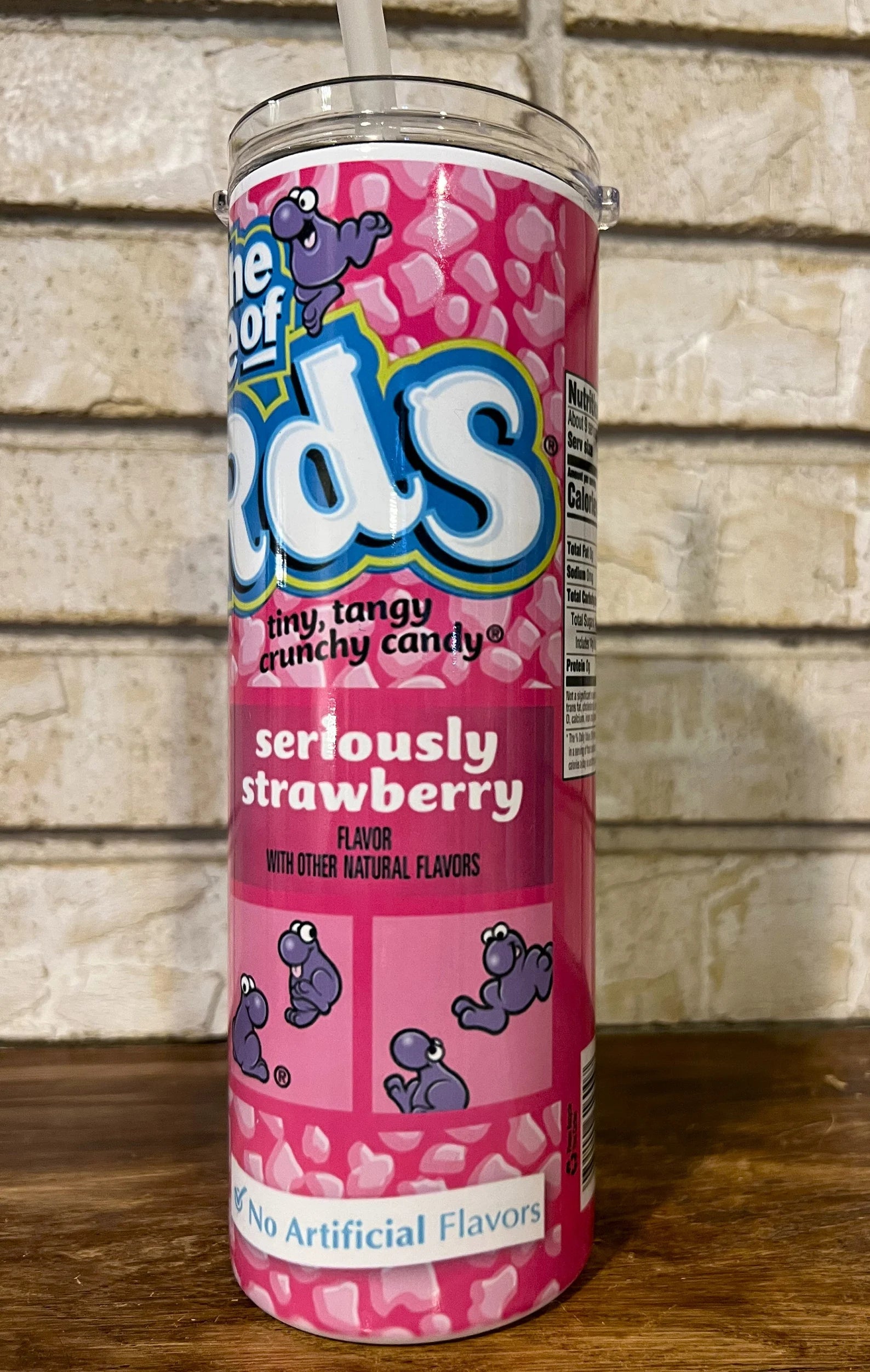 A blast from the past! Let's bring back all those sweet memories of enjoying those tiny, tangy candies as a kid. This would make for a super eye-catching and unique drink ware perfectly expressing your love for nostalgia and bold flavors. It's all about combining your interests and style into one awesome tumbler!